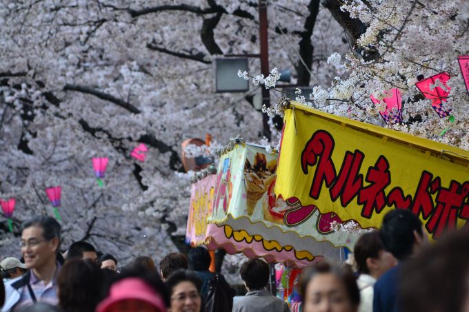 全国の桜名所100選に選ばれているところで、川沿いには屋台もたくさん出て、とてもにぎやかです。