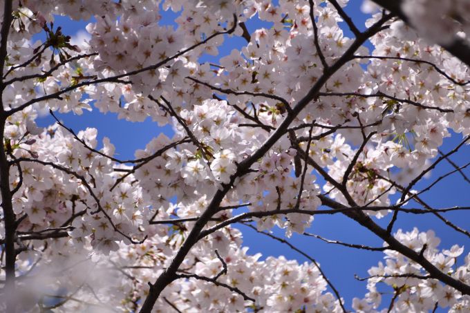 真っ白に写ってしまいがちな桜がほんのりピンクに写っています。